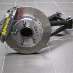 De achterste driehoeken afkomstig via Heli Racing zijn inmiddels klaar en wachten om opgebouwd te worden. We hebben even de remschijf en klauw gemonteerd om al een idee te kunnen vormen.