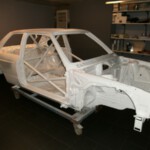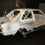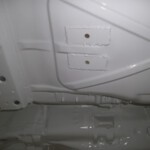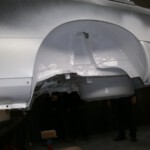 De eerste lakwerken zijn achter de rug. De onder- en binnenkant zijn ondertussen bedekt met een beschermend laagje verf nadat de laatste roestplekjes eerst genadeloos bekogeld zijn geweest met aluminium korrels. We gaan ook voor maagdelijk wit. Ook de buitenkant zal volledig in onschuld gedompeld worden.