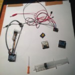 Door sommige laattijdige koerswijzigingen of dingen die ons pas duidelijk geworden zijn lang nadat de electronica ontworpen was, was er de noodzaak hier en daar wat kleine wijzigingen aan te brengen. Omdat het teveel tijd kostte om dedicated pcb’s te maken voor deze kleine aanpassingen dacht ik dat het een goed idee was om iets “proto” achtig in elkaar te knutselen en in epoxy in te gieten .