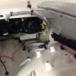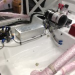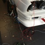 Gezien we de normale plaats opgeofferd hebben om meer radiator oppervlakte te hebben moesten we iets anders verzinnen. We hebben de aanzuig naar beneden geleid tussen de bumper en de wielkast. Weg van het warme motorkompartiment en vlak in de luchtstroom van de extra gaten in de bumper. Gezien dit verre van een standaard bocht maakt was er toch behoorlijk wat las en schuurwerk aan.