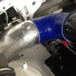 Het alu gedeelte is dubbel geisoleerd en we vertrekken onderaan met een diameter van 140mm, net voor de blauwe samco bocht hebben we een conische reductie gemaakt naar de diameter van de airbox.