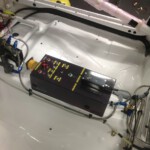 Because we still want to be able to control certain functions after being strapped in we’ve installed a little switchboard on the tunnel.