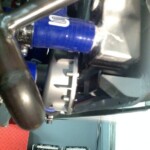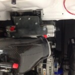 What we thought would be a walk in the park turned out a very long nightmare. The first problem we had was to find a suitable spot to install the heat exchanger.Underneath the radiator was possible but it was much too close to the crackshaft pulley. At any small incident the sensor could be hit so we abandonned that idea.