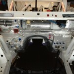 We mounted a big 25CrMo4 pipe between the two front chassis bars. During the build up of the car we already welded fixation points in the chassis bars so we now only needed to make a supporting plate to weld the pipe on.