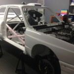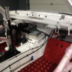 Because we still need to make a few small pipes in the engine bay and need to mount some small items like an oil catch tank, throttle cable,.. we tried to put the engine in the car.