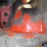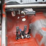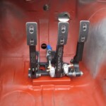 Together with Luc we spent a full day measuring and fitting to get the pedal box in place. At first it was suggested to have a piece of my legs surgically removed but fortunately I was able to turn the tide and we decided to make 3 round cut-outs in the bulkhead so that it is now possible to move the pedals if the brake cylinders used (compact or the long version) and still keep my full leg length.