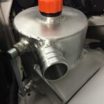 Because we always think too much about everything also the container to catch the oil damps has significantly changed. Version 1 was just something we bought, a nice red anodized container. But unfortunately these standard parts do not have