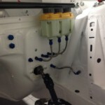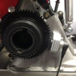 Aan de voorkant van de motor hadden we nog iets meer werk. Er moest nog een stabiel plaatsje gezocht worden voor de krukas sensor en de alternator heeft ook nog wat steun nodig. Het originele spansysteem is BMW onwaardig en ook het deksel waar de distributieketting achter zit durft nogal eens uitscheuren als je het originele steunpunt gebruikt om de alternator riem op te spannen. Vanzelfsprekend kunnen we hiermee geen vrede nemen en hebben we besloten een beugel te maken die zowel de krukas sensor huisvest en de alternator ondersteund.