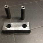 We zijn vertrokken met een inox plaat in een hoek van 90 graden te plooien. Vervolgens hebben we een ALU blokje gemaakt zodat de M3 E36 krukas sensor perfect tegenover de tanden van het triggerwiel staat. Om de riemspanning van de alternator te kunnen regelen hebben we een kort buisje gemaakt met aan de uiteinde busjes met linkse en rechtse draad. 2 uniball’s erin en we kunnen perfect regelen. We moesten enkel nog een busje draaien en het op de steun lassen om het onderste punt te verankeren. De reden dat we voor inox hebben gekozen is puur ifv tijd. Staal laten behandelen tegen roest duurt weer even en in deze periode is alles gesloten, vandaar …