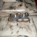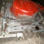 Terwijl Luc hele dagen bezig is om alle overblijvende nadenkit, rubber en andere substanties te verwijderen, probeer ik alle nodige steunen, gaten en andere attributen te voorzien. Voor de uitlaat hebben we 4 plaatjes met M8 bouten op de bodemplaat gelast waar later steuntjes met powerflex rubbers wordt opgeschroefd. Op enkele strategische plaatsen worden ook kabeltjes rond de uitlaatbuis bevestigd zodat we onze uitlaat niet kwijtspelen bij een falende rubber. Enkele sfeerbeelden …